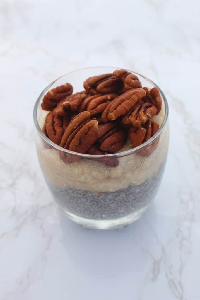 - Next morning, add the chia/milk mix to the bottom of the cup